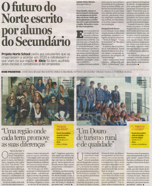 A edição de hoje do Jornal de Notícias dá destaque ao Norte School. Uma página dedicada à iniciativa com exemplos de projetos candidatos.